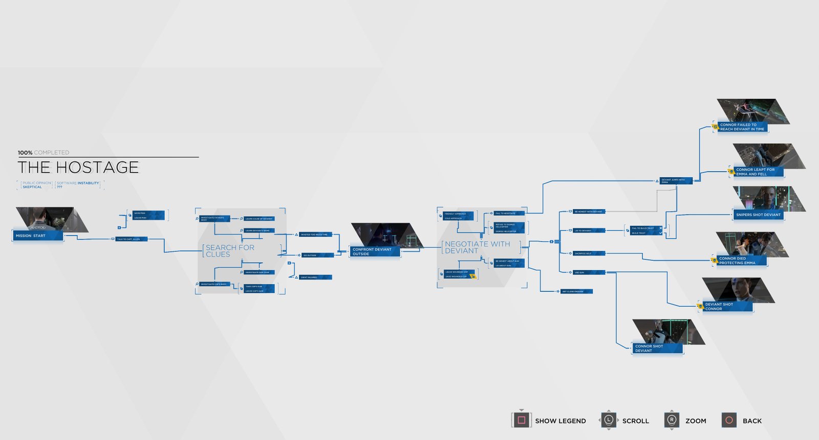 Todas as escolhas que você fizer dará uma história diferente e, consequentemente isso mudará o todo o contexto ao longo da história. Algo que você acha em meados da história ou as próprias decisões que escolherá, terá experiencia diferente. Quanto mais a história se modifica, mas diferente ela será. Muitos dessas histórias são até divididos em blocos para que não haja um desinteresse para quem assiste, mas todos são feitos conforme linhas como por exemplo a imagem acima para não perder os contextos.
